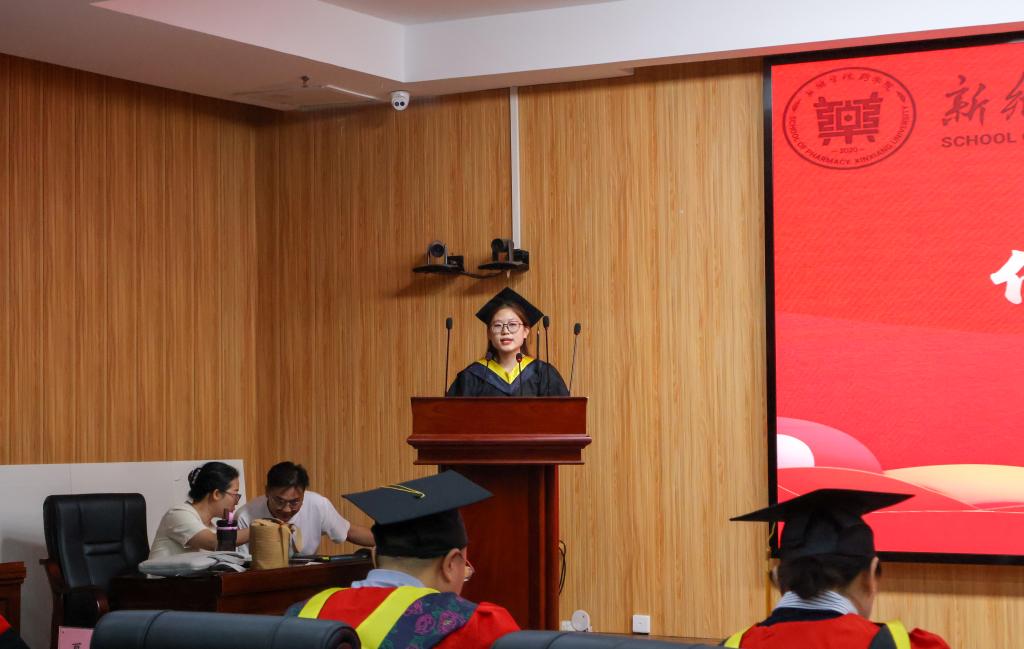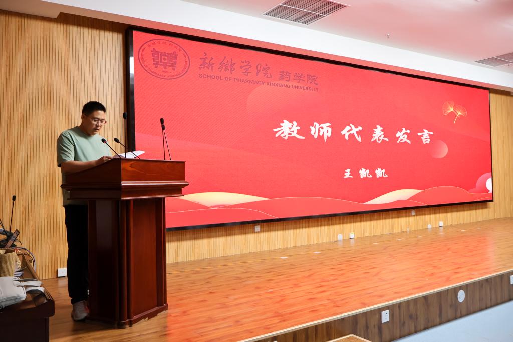随后,优秀毕业生代表刘萌以真挚的发言回顾成长点滴,饱含深情得表达了对师长的感恩、对未来的憧憬,以及在离别之际对母校、老师和同学们的不舍。教师代表、全国优秀教师王凯凯深情寄语,勉励毕业生坚守药学初心,以所学服务社会。骆云飞送上殷切嘱托,他肯定了毕业生们四年的努力与成长,叮嘱他们谨记校训和院训精神,带着tyc122ccvip的优良传统,在未来的日子里发光发热,在广阔天地中绽放药学人的智慧与担当,为民族复兴铺路架桥,为祖国建设添砖加瓦,做担当民族复兴大任的时代新人。