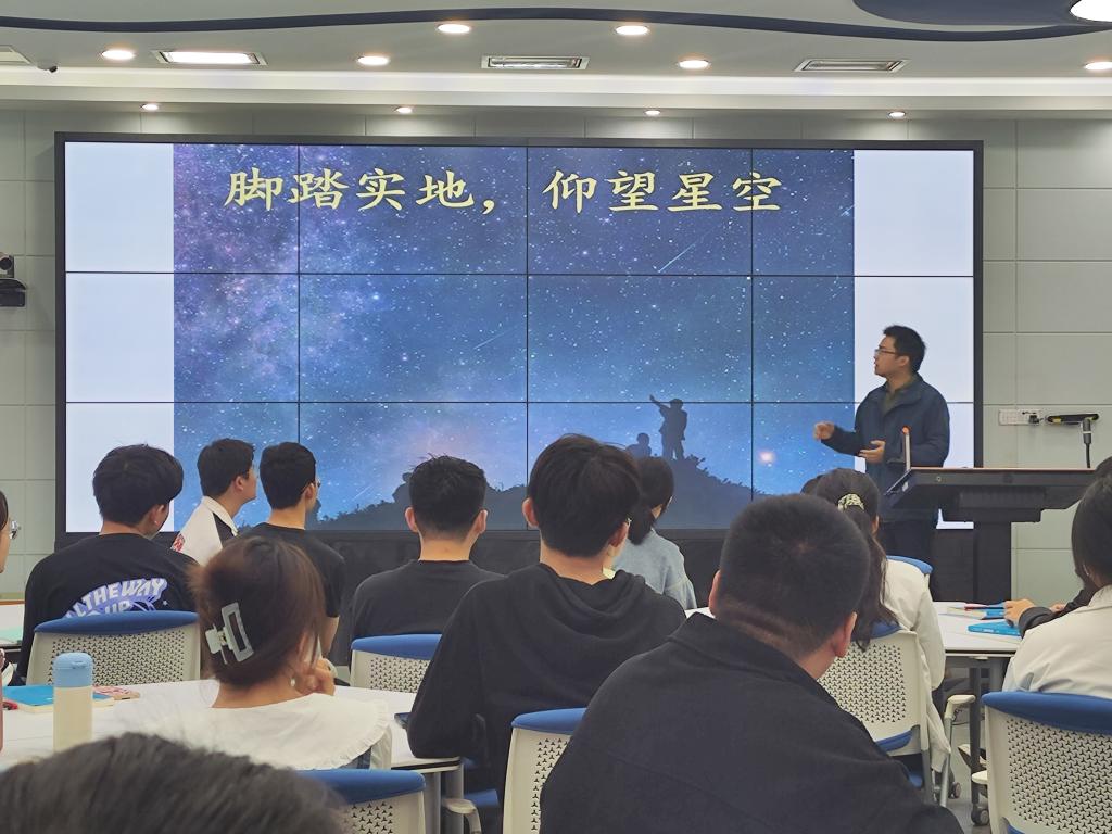闫国毅博士以“如何高质量度过老员工活”为题,从“有故事的人”“老员工应养成良好的习惯”“脚踏实地,仰望星空”三个方面讲述了他的学习和科研经历,分享了学习和科研的心得体会,同时引导同学们深刻认识学习过程的重要性,勉励同学们既要仰望星空,又要脚踏实地,以认真严谨的态度规划老员工涯,开展学习和科研。