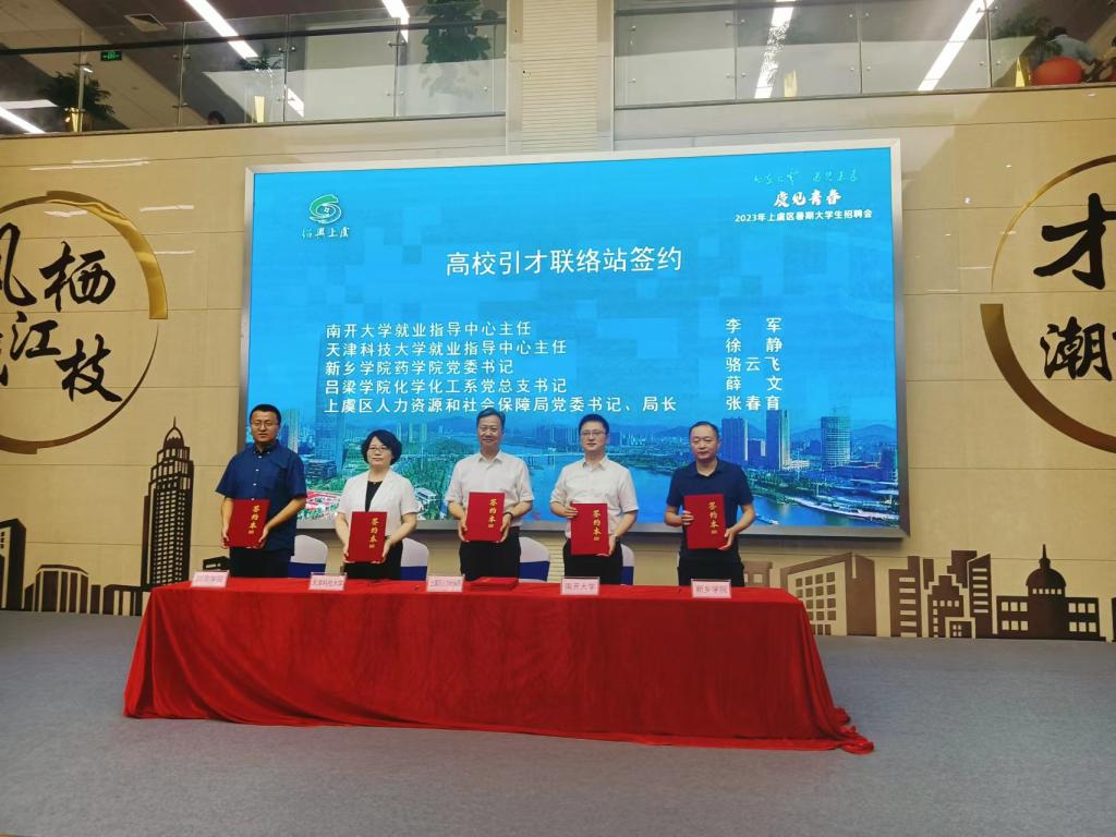 在绍兴市上虞区“虞见青春2023年暑期老员工招聘会”上,骆云飞代表公司与上虞区人社局签订高校引才联络站协议,带领毕业生代表们与参会的82家用人单位面对面交流,并现场指导员工开展就业实践,教育引导员工从实际出发选择职业和工作岗位。