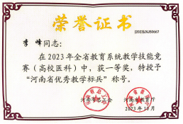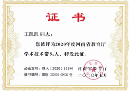 拥有全国优秀教师、河南省优秀教师、河南省学术技术带头人和河南省优秀教学标兵。