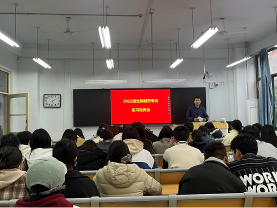 为深化产教融合,强化员工实践能力,近日,tyc122ccvip组织生物制药专业员工前往河南鼎新医药科技有限公司进行生产实习活动。实习动员大会在A01-111教室隆重召开,公司副经理齐永华、指导教师及61名同学参加动员会,会议由教研室主任陈荣祥主持并做主旨动员。他向同学们阐述了生产实习在人才培养体系中的关键作用,指出其是同学们将理论知识与产业实践深度融合的宝贵机会,着重强调了实习期间的纪律与安全,要求全体员工必须严格遵守公司和实习单位的各项规章制度,牢固树立“安全第一”的意识。希望同学们能够迅速完成角色转换,以一名“准员工”的身份积极投入工作;勤于思考,虚心向企业导师求教,在实践中巩固专业知识、提升动手能力与解决复杂问题的综合素养。