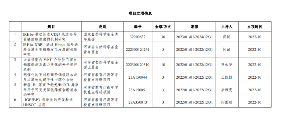 2022年科研项目立项情况表