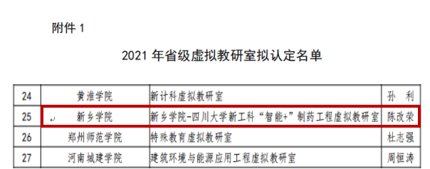 近日,河南省教育厅对2021年省级虚拟教研室认定及国家级虚拟教研室推荐名单进行了公示,公司与四川大学共同申报的新工科“智能+”制药工程虚拟教研室获批省级虚拟教研室立项。