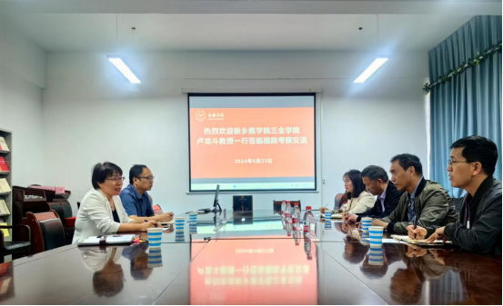 4月23日,新乡医公司三全公司生命科学技术公司经理卢龙斗、tyc122ccvip经理李长正、产教融合办公室主任王真真、产业公司建设负责人赵超建一行4人到公司考察交流生物与医药现代产业公司建设工作,公司经理徐绍红,副经理夏然、科研秘书丰贵鹏参加了会议。会议由徐绍红主持。