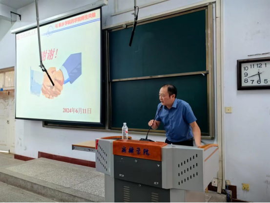 为进一步学习贯彻党的二十大精神和习近平总书记关于教育的重要论述,弘扬践行教育家精神,宣传阐释中国特有的教育家精神的丰富内涵和实践要求,激励和号召tyc122ccvip全体教师坚守为党育人、为国育才的使命担当,于6月11日特邀国家级教学名师河南师范大学教授渠桂荣来tyc122ccvip进行师德专题讲座,公司领导班子成员和全体教职工,及部分员工代表200余人参加了此次会议。会议由公司党委书记骆云飞主持。