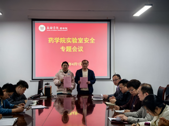随后,实验室负责人、教师代表和员工代表等进行了表态发言,逐级签订了实验室安全责任承诺书。
