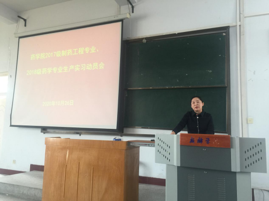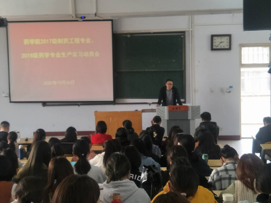 为了进一步做好毕业生实习前的思想工作,克服同学们实习前的焦虑情绪,同时便于同学们能了解并尽快适应实习生活,以优异的成绩圆满完成此次实习任务,10月26日下午,公司在A01-423教室召开了制药工程、药学专业生产实习动员大会,公司党总支书记韩楠、副经理齐永华、制药工程专业以及药学专业教师及2017制药工程专业、2018药学专业的全体同学参加了此次动员会,会议由丰贵鹏老师主持。