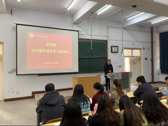 11月2日下午3点,公司在A01-225教室召开2022届毕业生实习动员会。公司副经理齐永华、各教研室主任、实习指导教师、毕业班辅导员,以及2022届制药工程专业和药学专业毕业生参加会议,会议由教学秘书李峰主持。