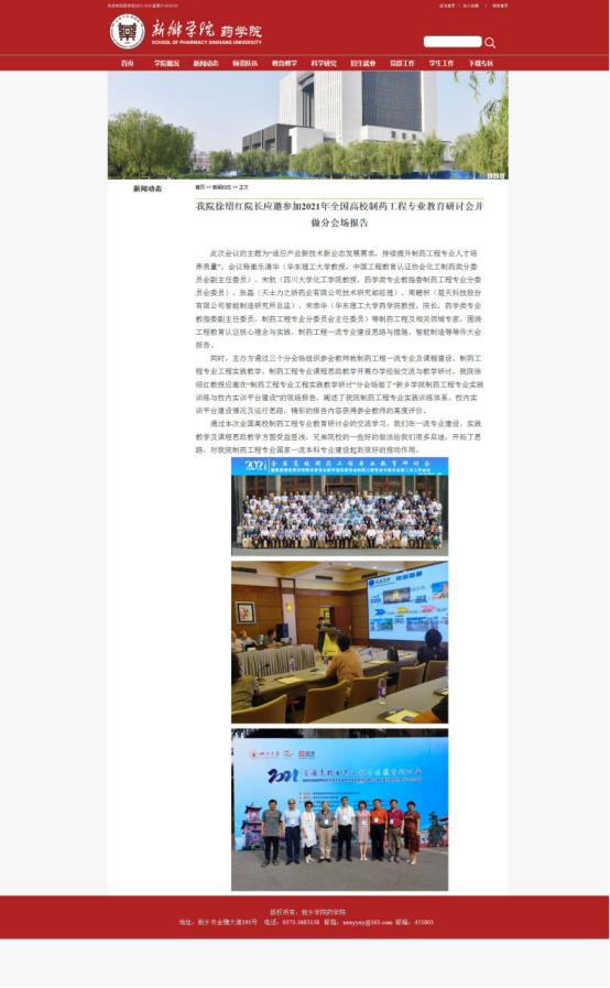 全国高校制药工程专业教育研讨会,徐绍红教授作了“制药工程专业实践训练与校内实训平台建设”的报告